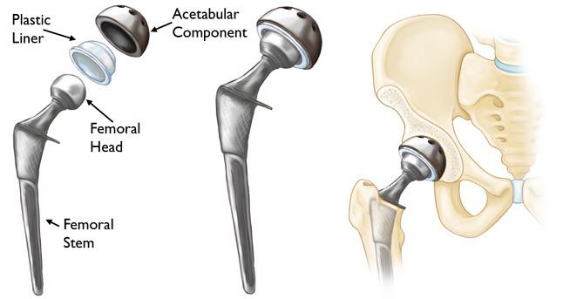 A cirurgia consiste na substituição da articulação degenerada por componentes protéticos: